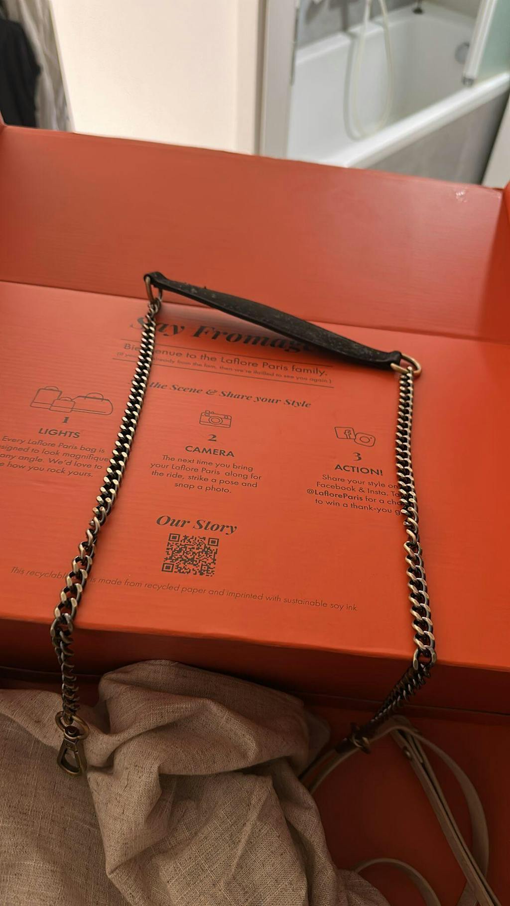 You can store the chain strap inside your bag and easily clip it on your bobo or bebe when you want a more elegant look.